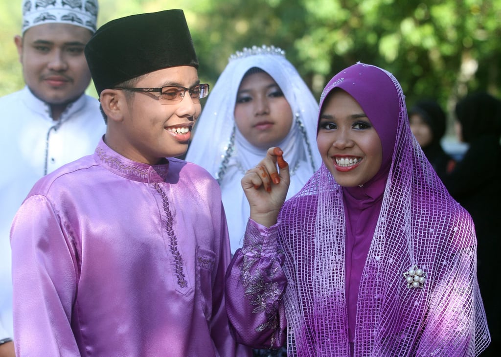 Молодожёны улыбаются во время свадьбы в Селангоре, недалеко от Куала-Лумпура, Малайзия. Фото: AFP